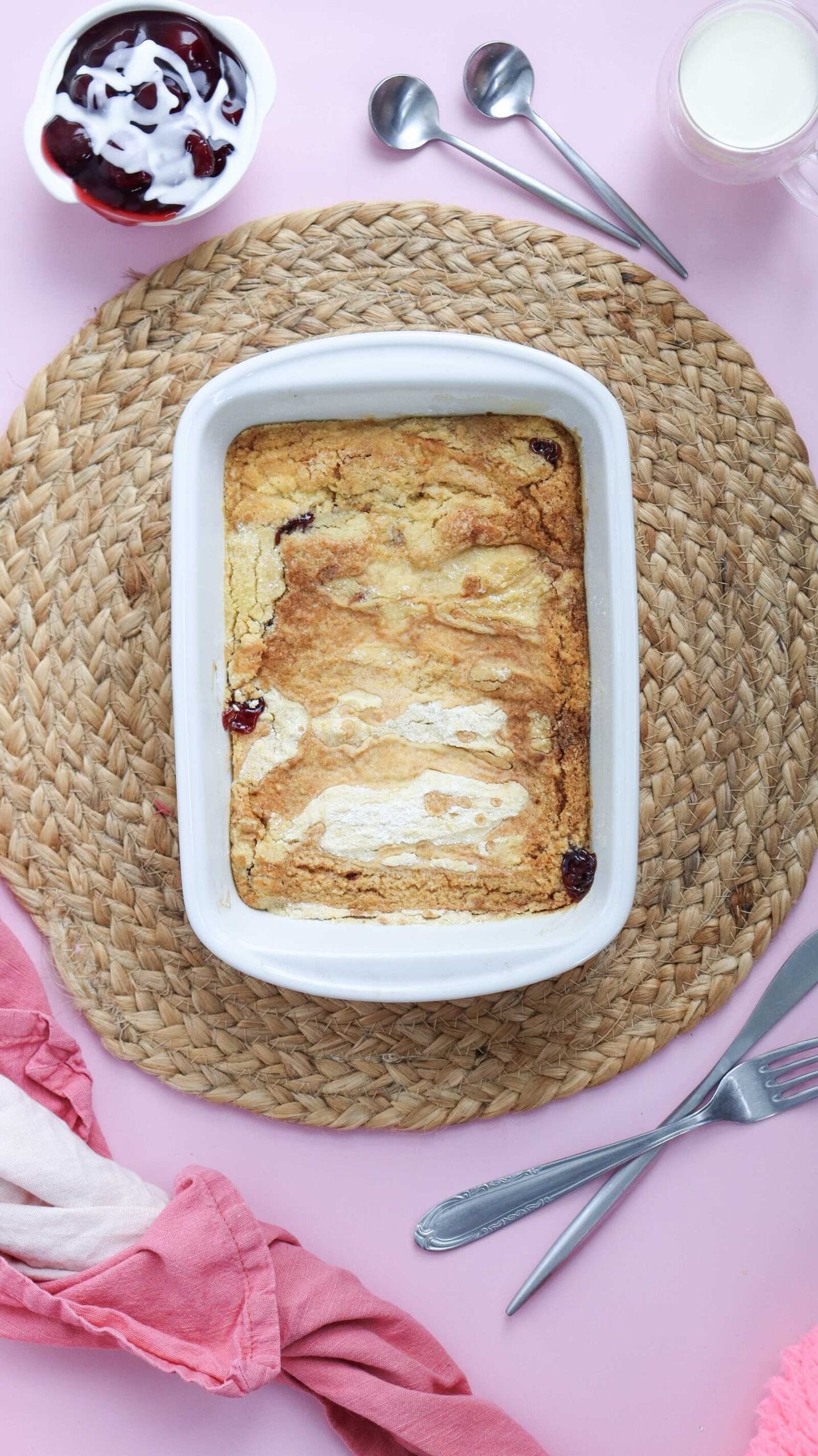 Unlike traditional cakes, there’s no mixing involved. The layers stay separate, creating a texture that’s crisp on top, tender in the middle, and saucy on the bottom. It’s rustic, comforting, and meant to be served casually—often straight from the baking dish.