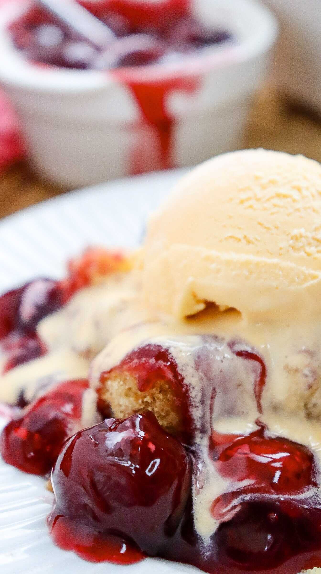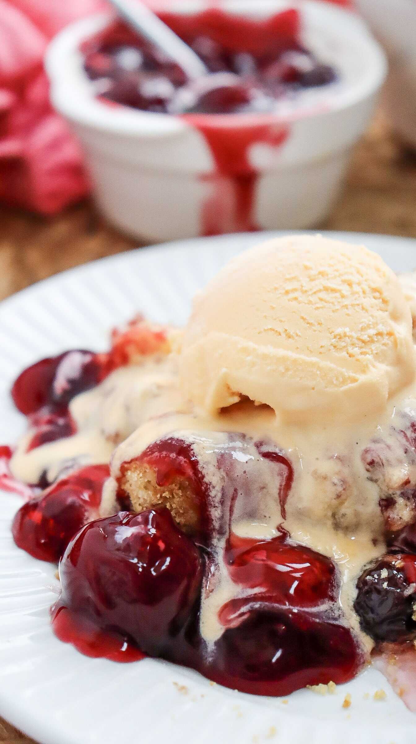 Cherry dump cake tastes especially good reheated with fresh ice cream on top.